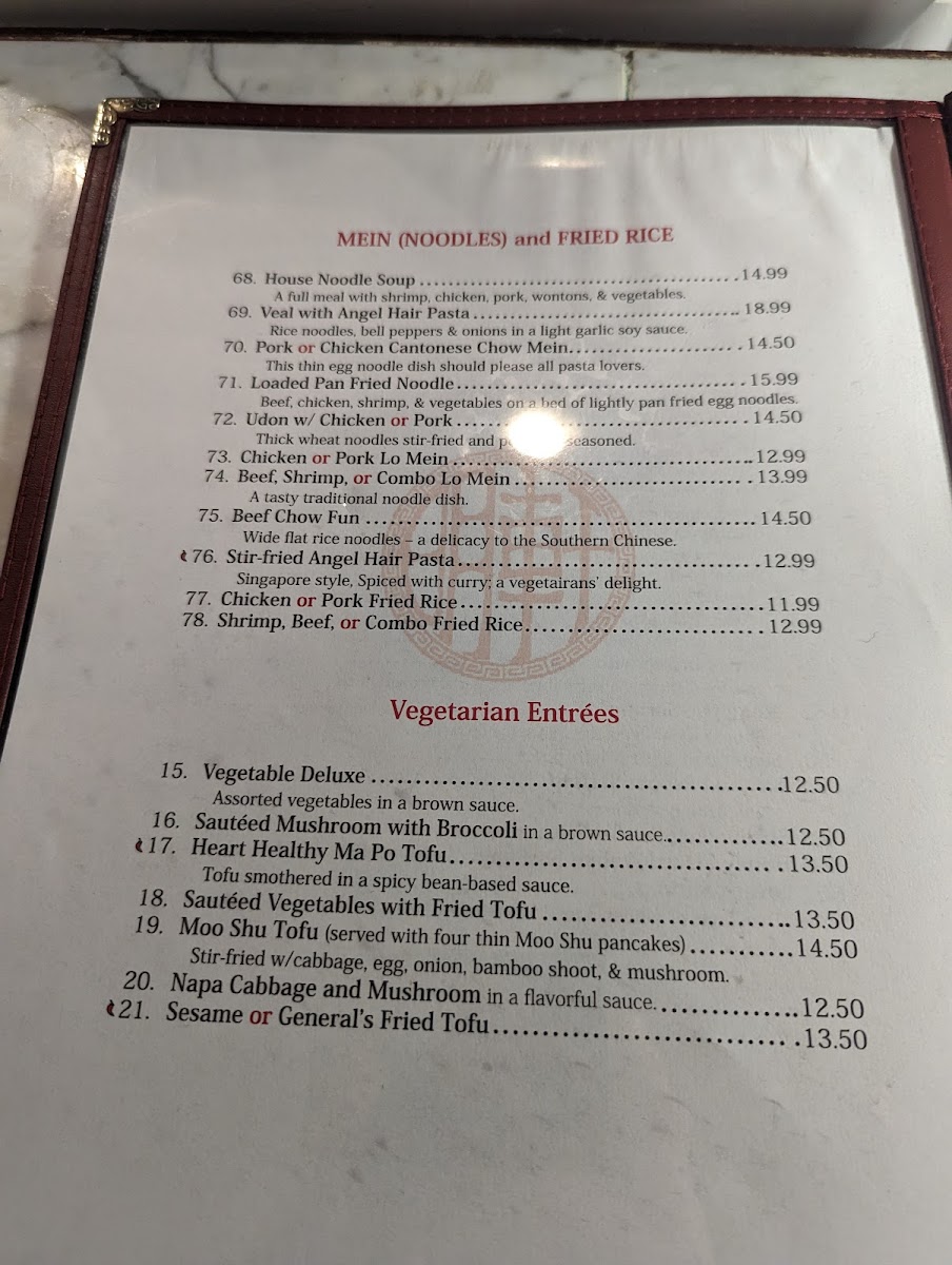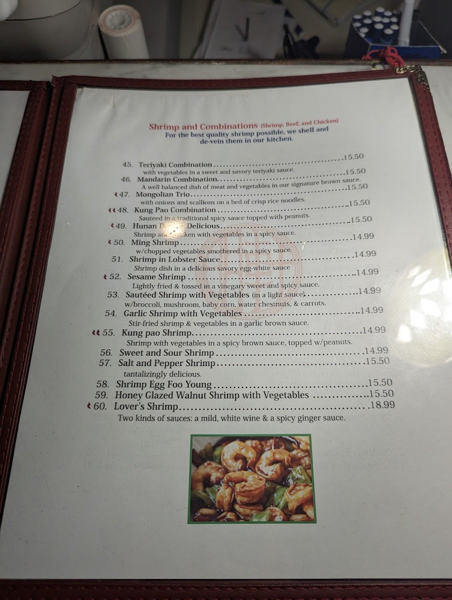 lo mein in a brown sauce w/shrimp scallops chicken and vegetables