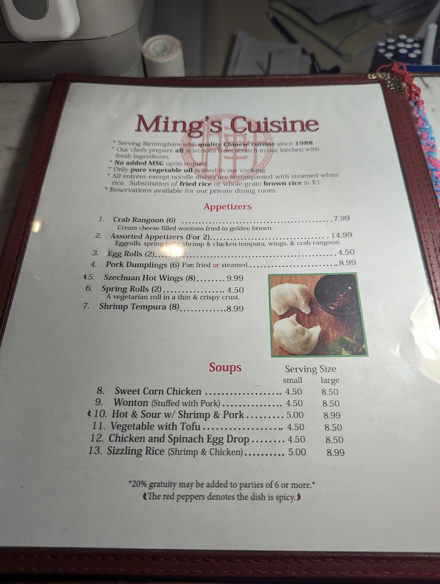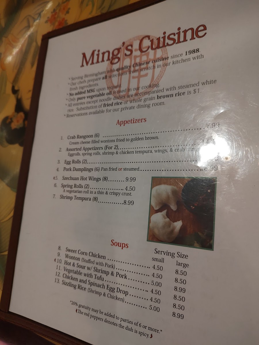 eggrolls spring roll shrimp and chicken tempura wings and crab rangoon